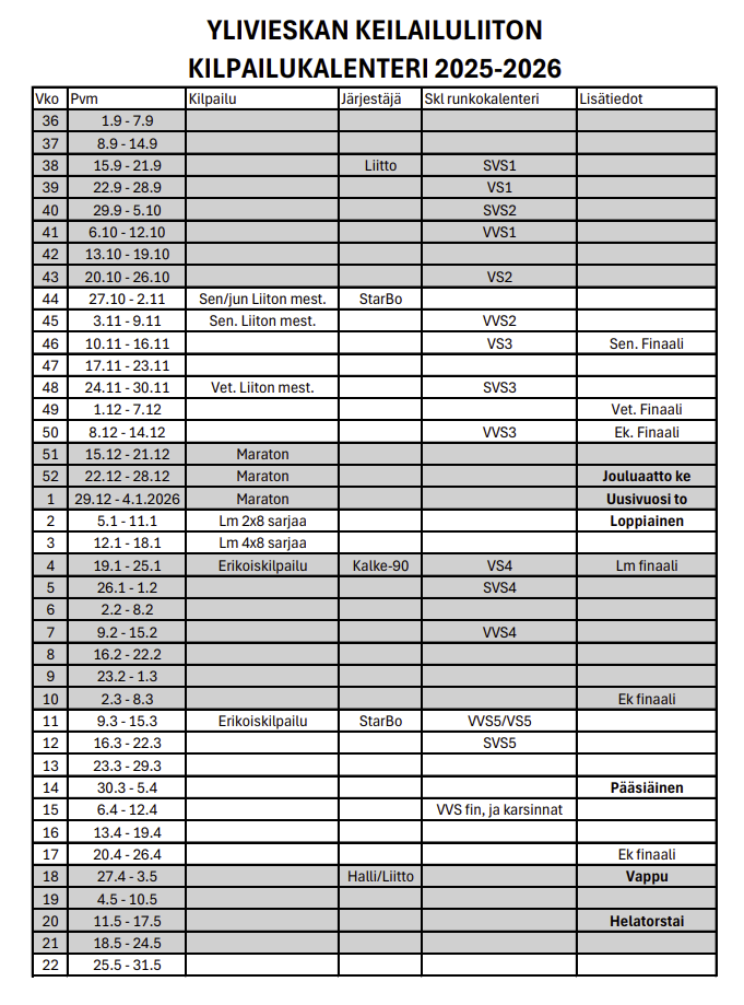 YLIVIESKAN KEILAILULIITON MESTARUUSKILPAILUT 2026 -KUTSU